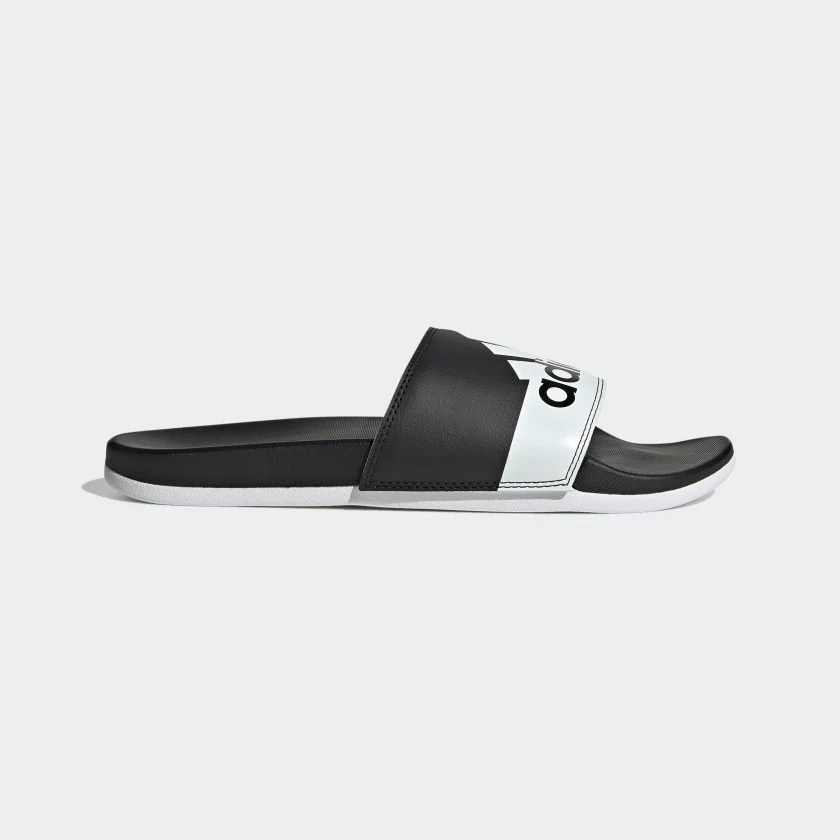 Slide feet first into comfort. With a classic design, these adidas slides are the epitome of versatility and laid-back vibes. A contoured footbed delivers plush cushioning for all-day comfort. A stylish bandage upper features adidas branding.